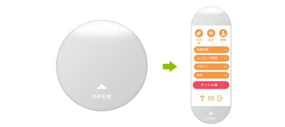 ページの作成や更新もレイアウトを崩さない雛型素材のコンテンツパーツを選ぶだけ!